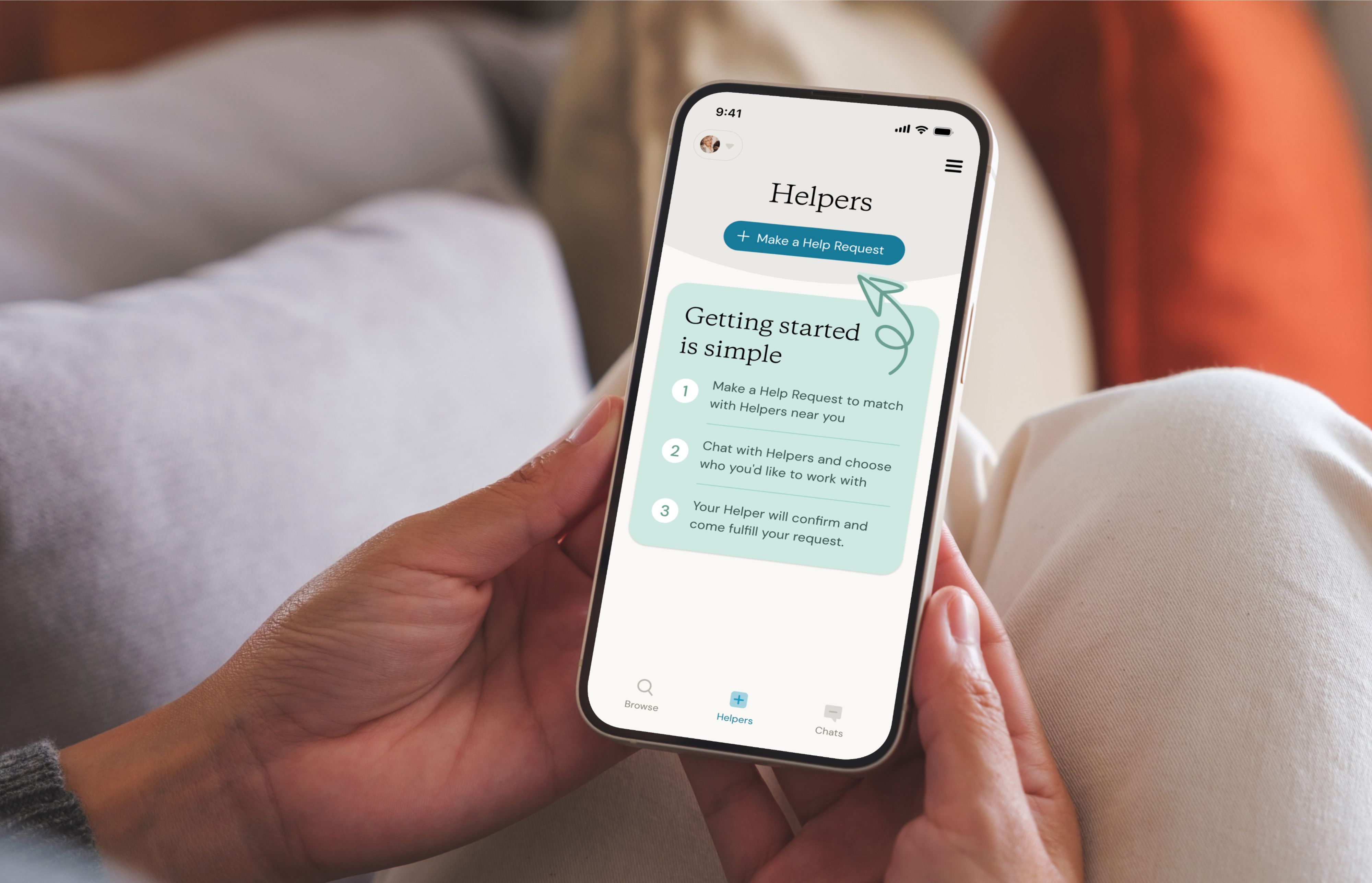To hire a senior care provider on Herewith, start with a Help Request. Once your request is posted, you can review applicants, chat with them, and book your favorite.